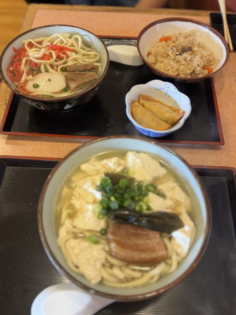 お友達はじゅーしーと呼ばれる炊き込みご飯と沖縄そばのセット。