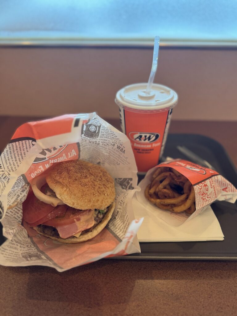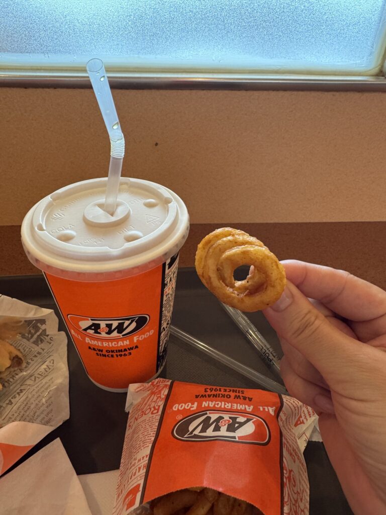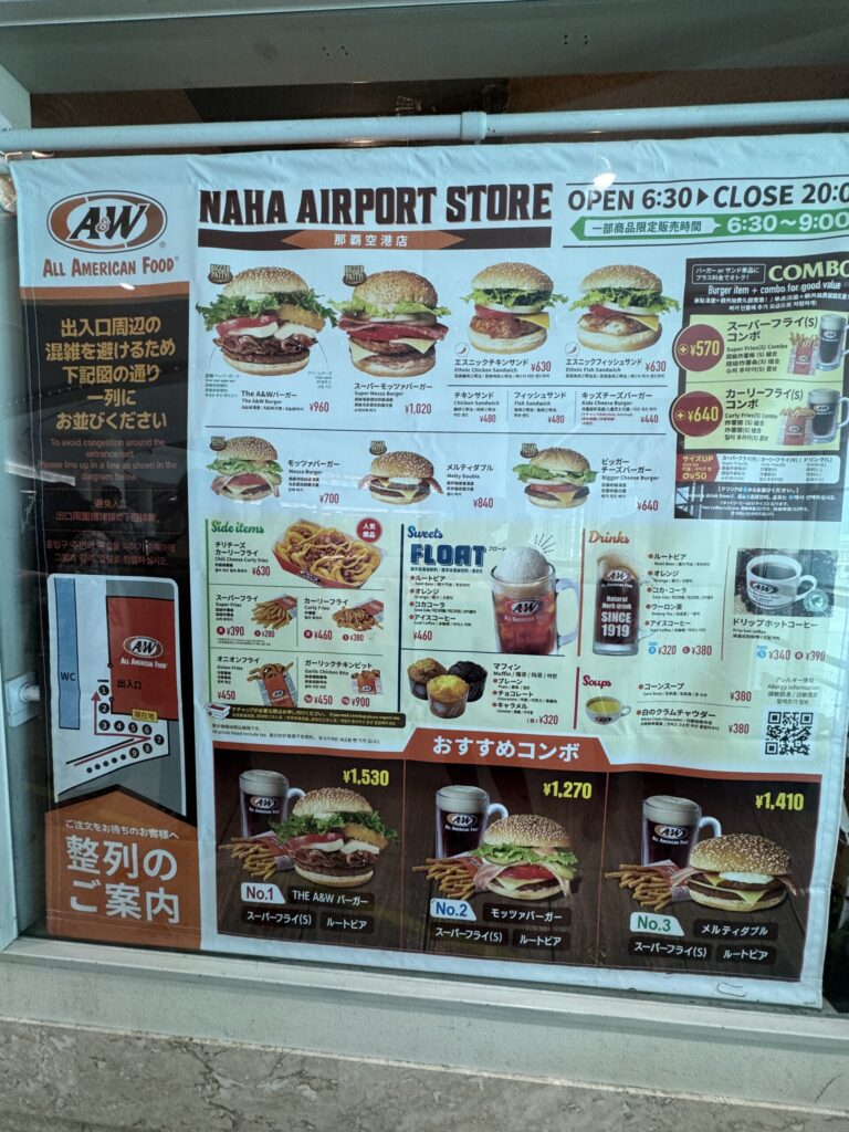 ご当地ごはんでバーガーショップの空港ビル内「A&W」(通称エンダー)へ行きました。